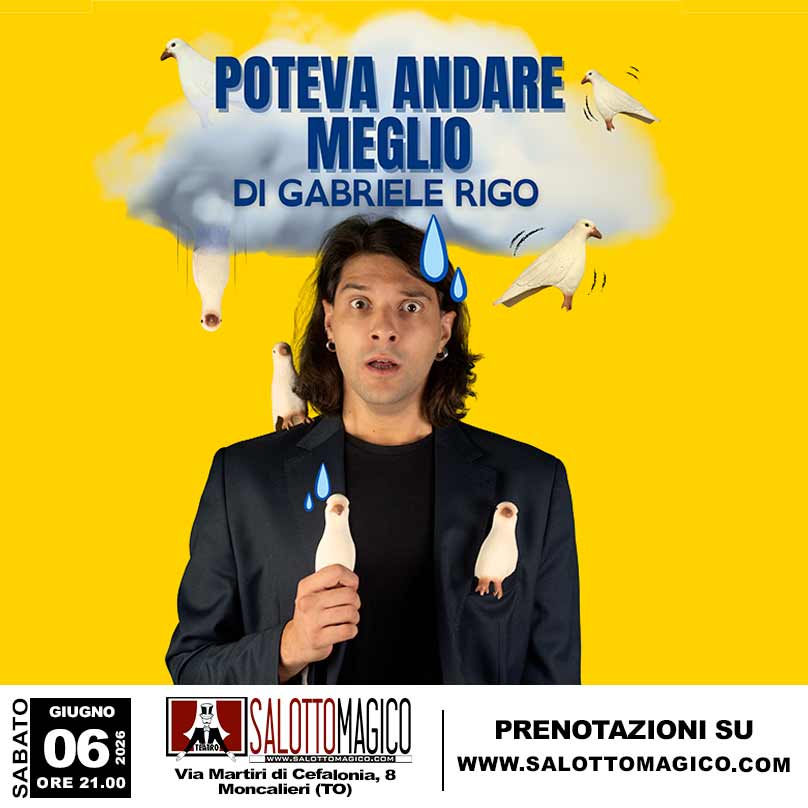 “Poteva andare meglio” è uno spettacolo di magia comica che unisce illusionismo e comicità in una riflessione ironica sul fallimento, un elogio agli sfigati.