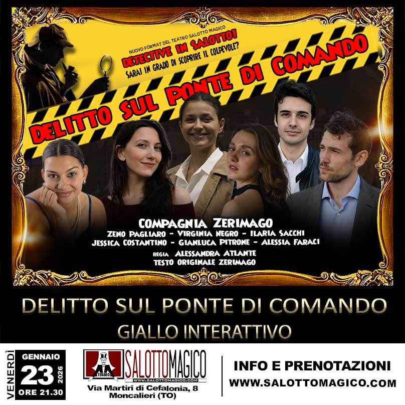 Quarta del nostro format di successo“DETECTIVE IN SALOTTO!”. Il format teatrale interattivo del Teatro Salotto Magico a cura della Compagnia teatrale Zerimago.